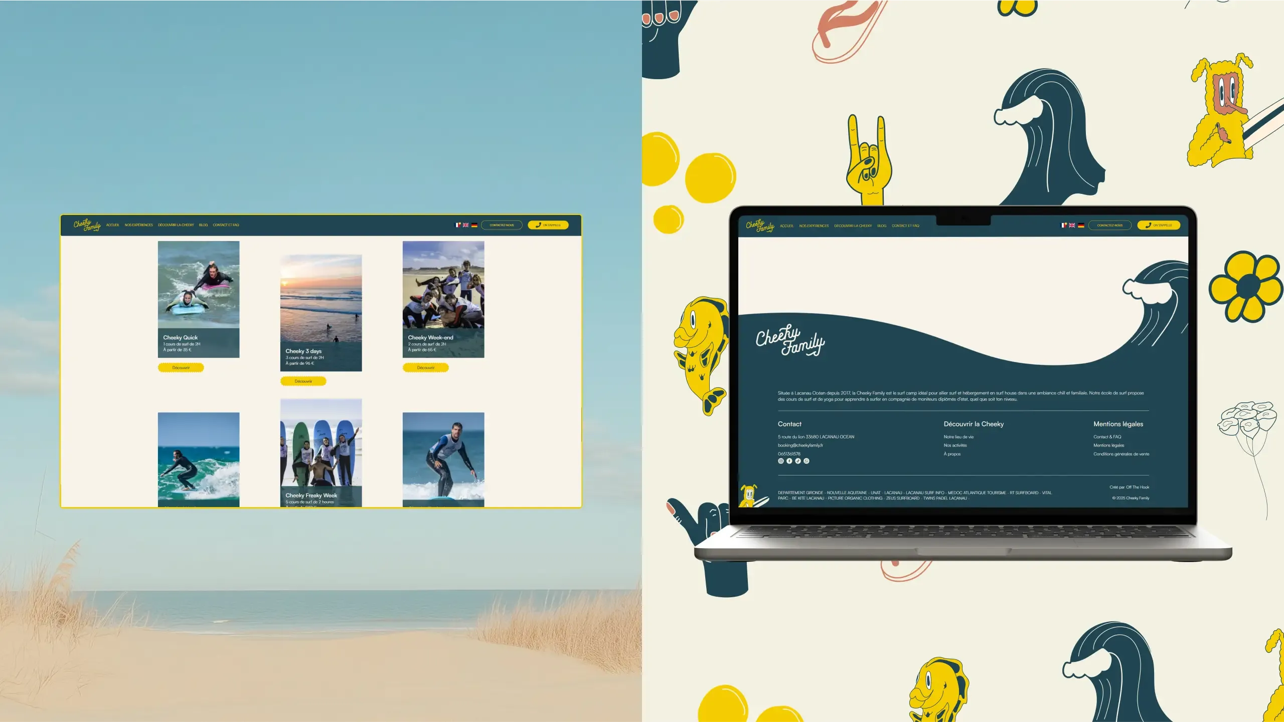 La Cheeky Family, surf camp à Lacanau, est le fruit d’un parcours qui résonne comme une allégorie du surf : des voyages de la Californie aux îles du Pacifique, des rencontres, des sensations et du partage. Alors, quelque part, ces deux potes n’avaient pas d’autres choix que de poser leurs planches dans un endroit qui rassemble tout ça, pour tous ceux qui veulent voir du pays. Et comme ils aiment le dire, “Be cheeky, join the family”.